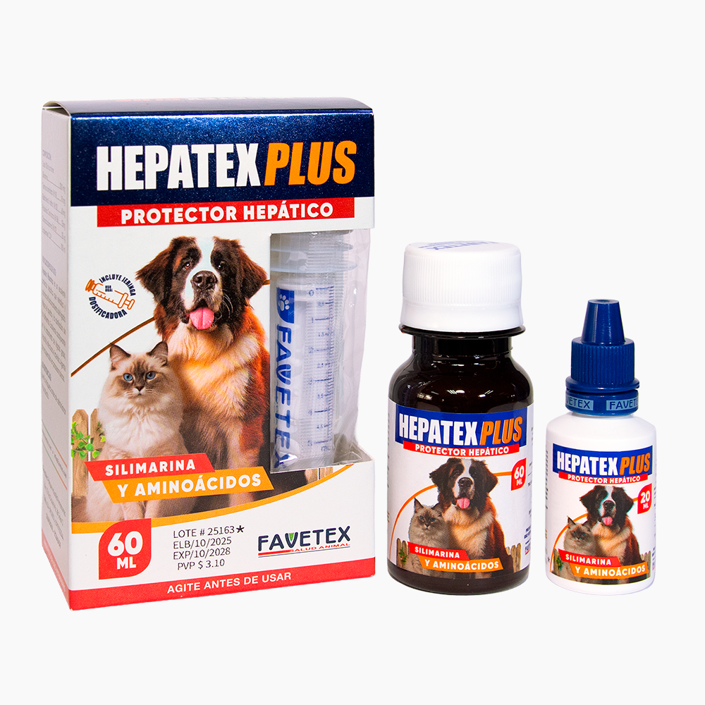 HEPATEX MASCOTAS es un protector hepático antitóxico que revitaliza el hígado mejorando su funcionamiento; además es un desintoxicante y evita la acumulación de grasas. Su gran efectividad controla: Hepatitis infecciosa, Hígados grasos, Ictericia y la intoxicación por micotoxinas.